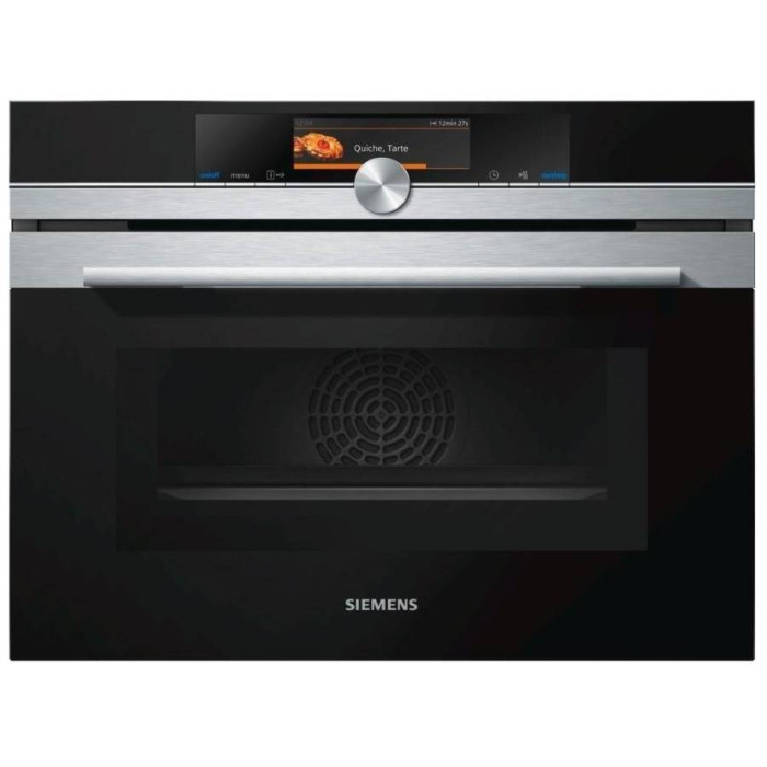 Електрична духовка Siemens CM678G4S1 є сучасну вбудовану модель компактних розмірів 45,5x59,5x54,8 і обсягом 45 л. Модель приємно порадує своїми можливостями і набором функцій - є 15 режимів нагріву, зокрема класичний нижній нагрів, гриль, конвекція, режим для приготування піци і додатковий режим СВЧ з максимальною потужністю мікрохвиль до 900 Вт. Крім того, передбачено наявність таймера і термозонда, а для управління пристроєм використовується сенсорний дисплей. Вас не підведе система безпеки у вигляді захисту від дітей і своєчасного захисного вимкнення, а каталітична система очищення значно спростить догляд за духовкою.