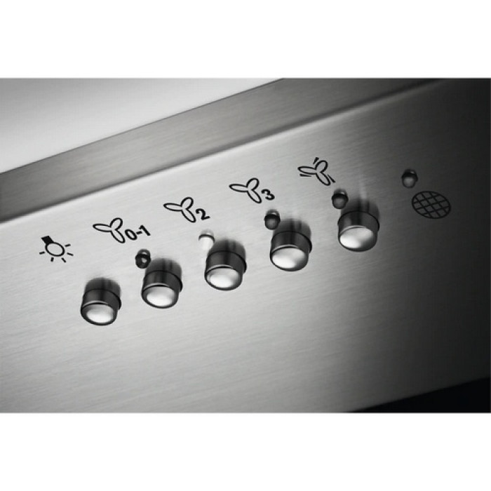 Вбудована витяжка AEG DGE5661HM встановлюється в кухонну шафу над варильною поверхнею. Вона виготовлена в корпусі із міцної та довговічної нержавіючої сталі та ефективна для приміщень площею від 20,5 до 28,4 кв.м. Пристрій може відводити забруднене повітря у вентиляційний канал, очищаючи його фільтром грубого очищення від частинок жиру. Також воно здатне створювати циркуляцію кімнатної атмосфери через вугільний фільтр, який слід придбати додатково. Прилад обладнаний мотором, що працює на трьох швидкостях із продуктивністю від 300 до 580 куб.м на годину та в інтенсивному режимі, коли продуктивність зростає до 700 куб.м на годину. Забір повітря виконується по периметру моделі, що знижує споживання електроенергії та зменшує шум, а щоб додатково висвітлити робочу поверхню, в ній є два LED spotlight. Вбудована витяжка AEG DGE5661HM оснащена функцією Hob2Hood, яка узгоджує її параметри з функціонуванням варильної поверхні. Керується прилад надійними кнопками та пультом дистанційного керування.